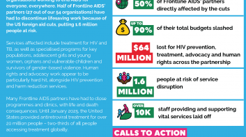 While Frontline AIDS receives no US funding, half of our partners – 27 out of our 54 global partners – are impacted by the American foreign aid cuts. Together, we demand a new era of leadership and collaboration in the global HIV response.