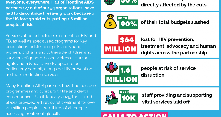 This factsheet outlines the impact of the US funding cuts on Frontline AIDS partners around the world.
